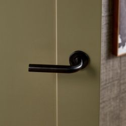 Deze deurkruk op rond rozet is vervaardigd uit roestvast staal met een zwarte PVD-coating, passend in moderne en klassieke interieurs. Het verdekte, geveerde rozet zorgt voor automatische horizontale terugkeer. De deurkruk wordt per paar geleverd, inclusief bevestigingsmateriaal en een duidelijke montagehandleiding voor moeiteloze installatie. Intersteel Q-serie.